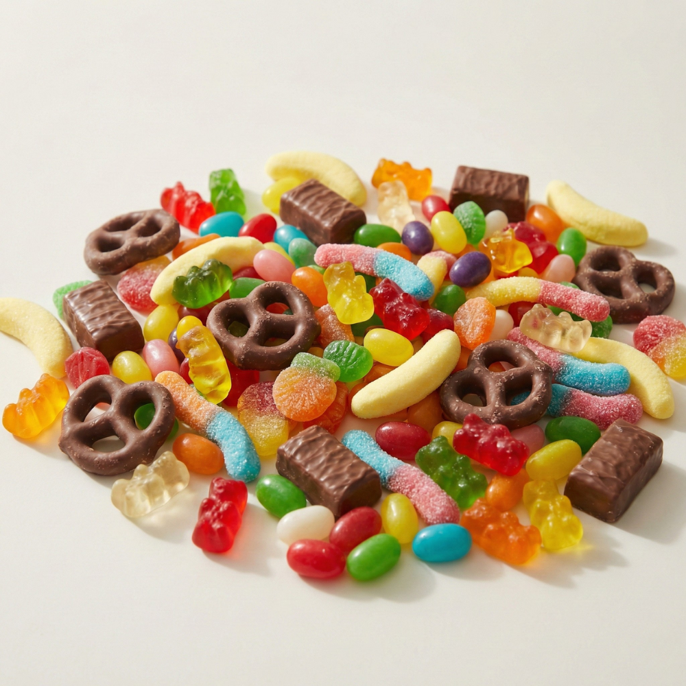 Candies, chocolates, and sweet treats mixed perfectly for parties, movie nights, family fun, and celebrations.